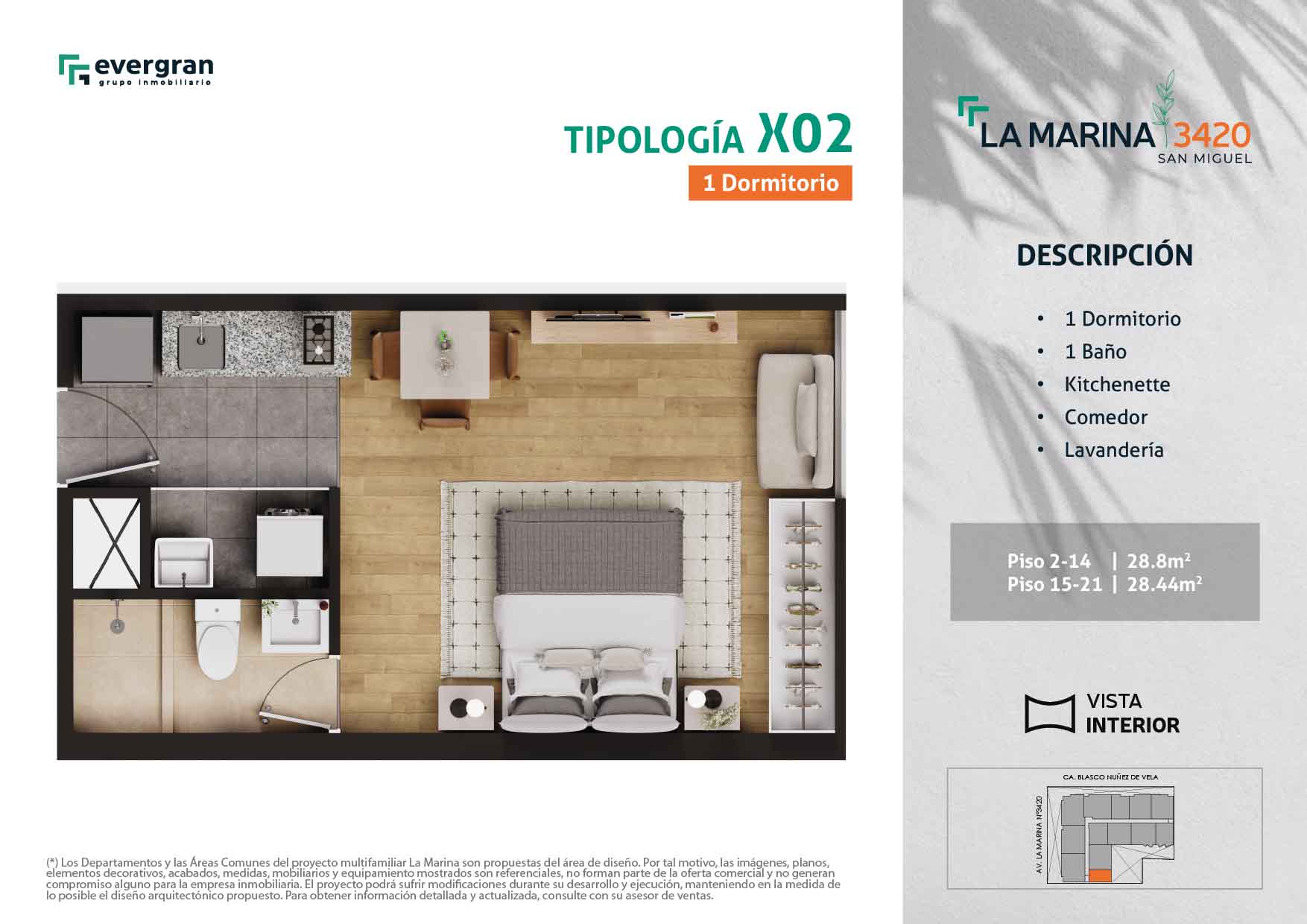 Tu próximo depa está en una ubicación que lo tiene todo. En la Av. La Marina 3420, San Miguel, estratégicamente conectado con avenidas clave como Elmer Faucett, Av. Universitaria, y La Costanera. Vías rápidas que te acercan a lo mejor de Lima en cuestión de minutos. Vive conectado con todo lo que necesitas, en una zona llena de vida, comercios y servicios. Este moderno desarrollo ofrece departamentos desde 28 m² con opciones de 1, 2 dormitorios y 2 dormitorios + estudio, ideales para quienes buscan comodidad, funcionalidad y una excelente ubicación. Diseñado para brindarte un nuevo estilo de vida, La Marina 3420 combina practicidad y bienestar para que tú y tu familia disfruten cada día al máximo. ¡Un proyecto pensado para ti, cerca de todo! La Marina 3420 es un proyecto de viviendas de interés social que cuenta con el Bono Mivivienda Verde, lo que garantiza la incorporación de criterios de sostenibilidad en su diseño y construcción. Esto significa que al vivir aquí, podrás ahorrar hasta un 30% en gastos de servicios básicos como luz y agua.